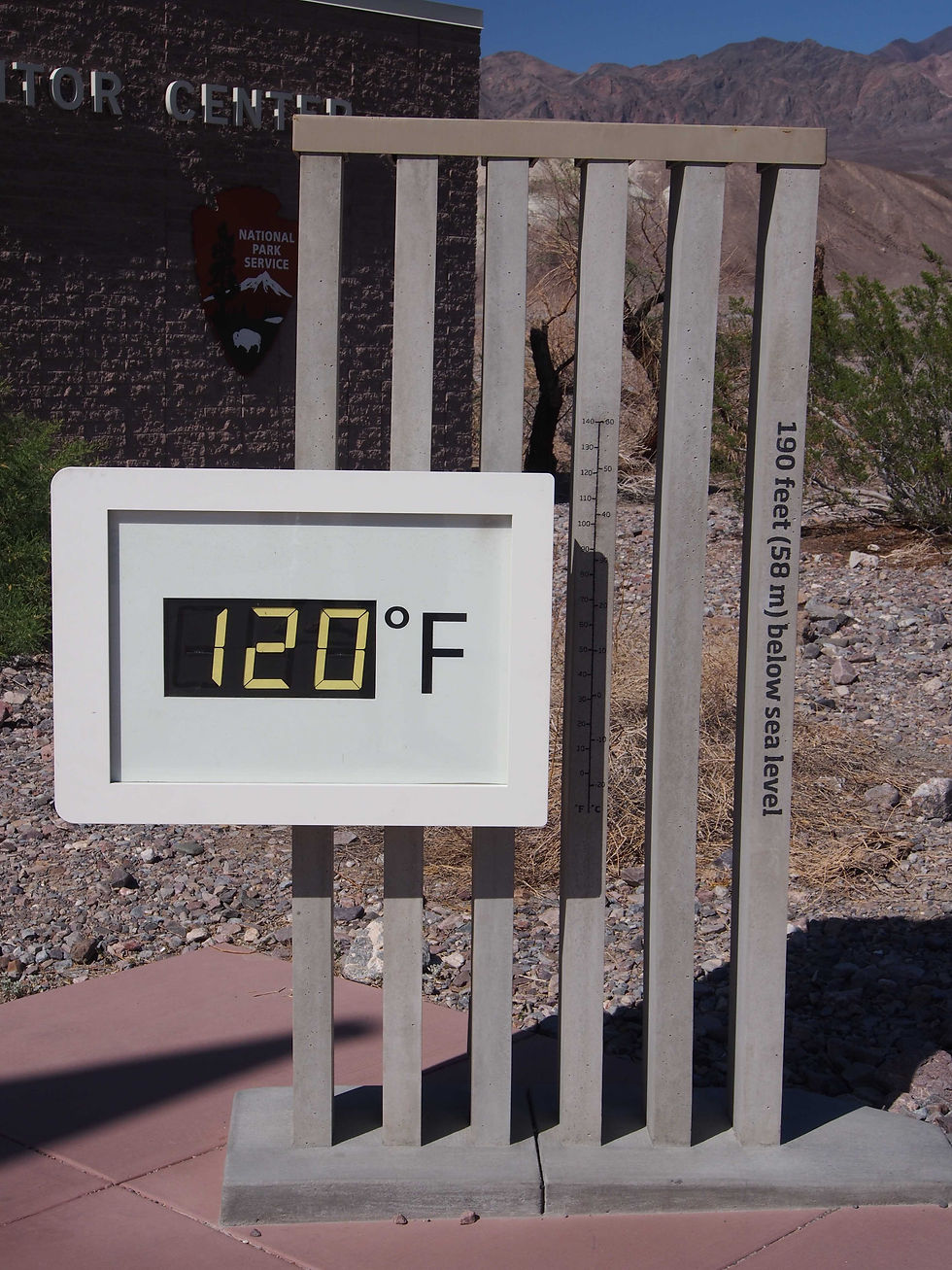 Pour en revenir à nos histoires de confort thermique, il convient de savoir que les nombreuses chaines de montagnes qui séparent la Death Valley de l’Océan Pacifique assèchent totalement les entrées d’air océaniques et font de cet endroit un des plus secs et des plus chauds du globe… petit détail que le frère de Chacha n’a semble t’il pas jugé opportun de préciser… sympa…